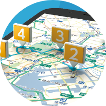 トラックの配送管理やルートマッブ検索・動態管理システムの開発、外国人観光客に向けた多言語地図や経路検索サービスの提供、避難マッブや迂回路情報など地域/住民向けWebサービスの提供等多彩な用途にご利用いただけます。