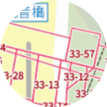 また、地番とのマッチングにより、筆界データに不動産登記受付帳データ(別売り)をリンクすることも可能です。 -