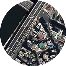 ズレなし航空写真から地図を制作しているため、写真と地図の背景表示を切り替えても表示位置の“ズレ”が発生しません。