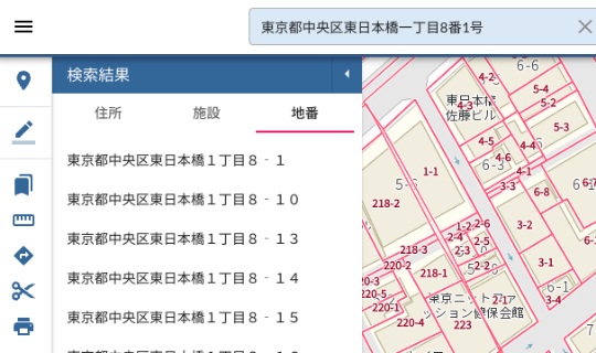 地番検索機能 指定された文字列で地番を検索し座標情報を返します