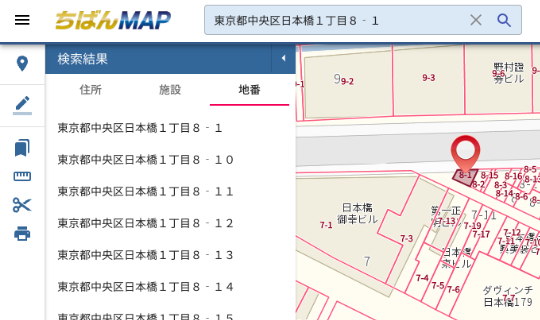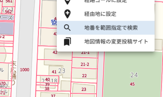 地番からの地図検索や、住居表示住所からの土地の検索が容易に行えるようになります。